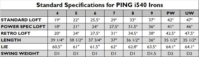 · Tungsten weighting in 4 to 7 irons lowers the CG of the i540 irons for increased ball speed, higher launch, more stopping power